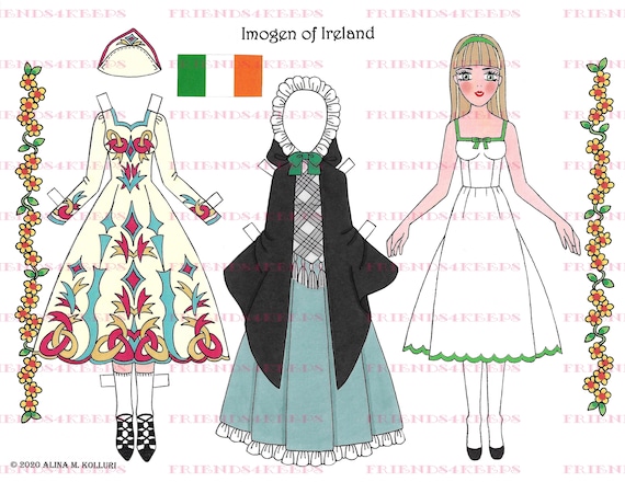 Irish Costumes Imogen Printable Paper Doll Instant Etsy