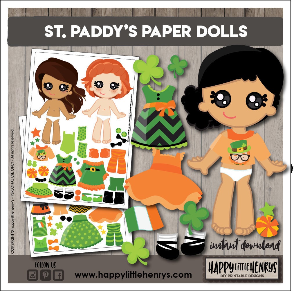 St Paddys Paperdolls Diy Paper Dolls St Patricks Day Etsy