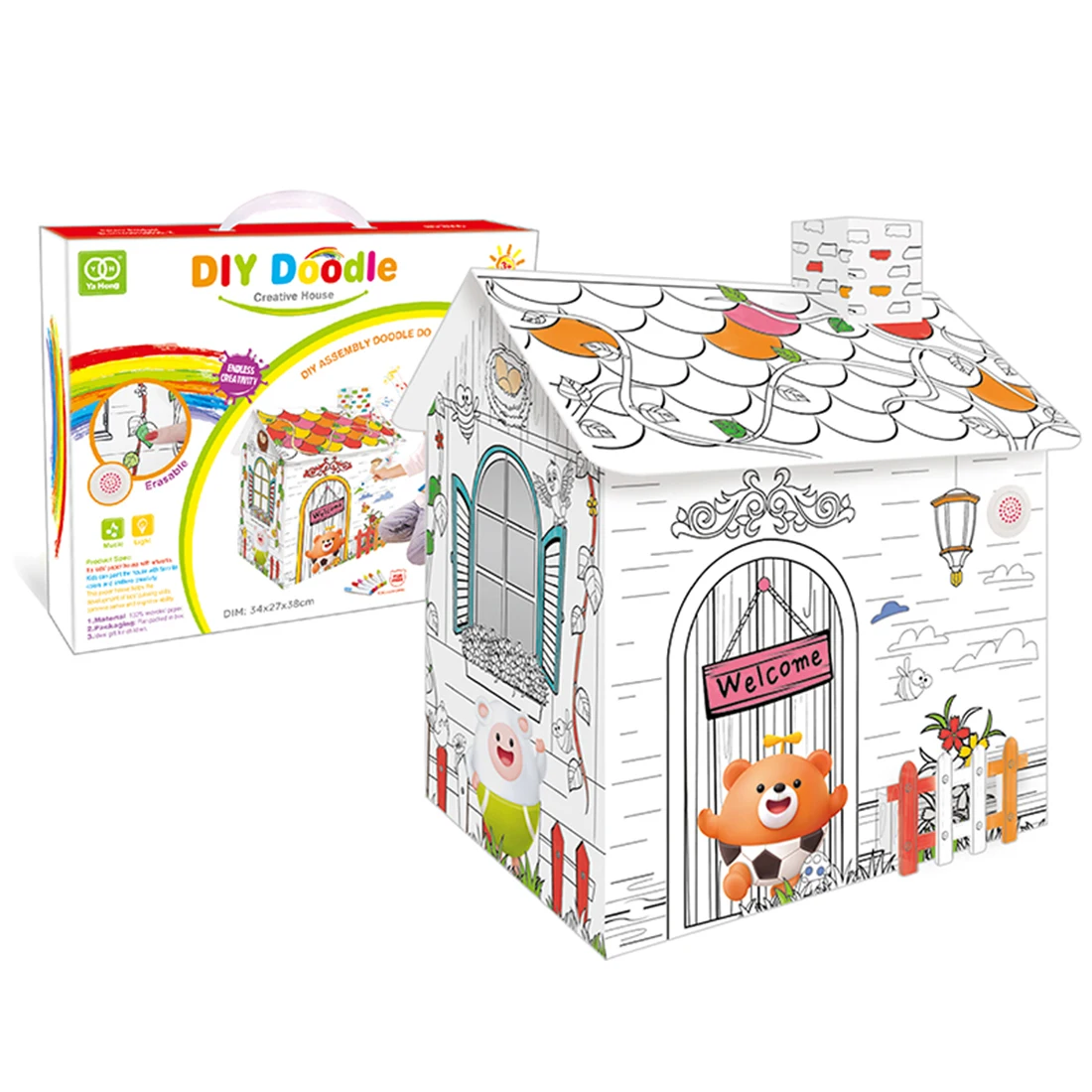 Children Hand Painted Graffiti Assembly House Diy 3d Paper House