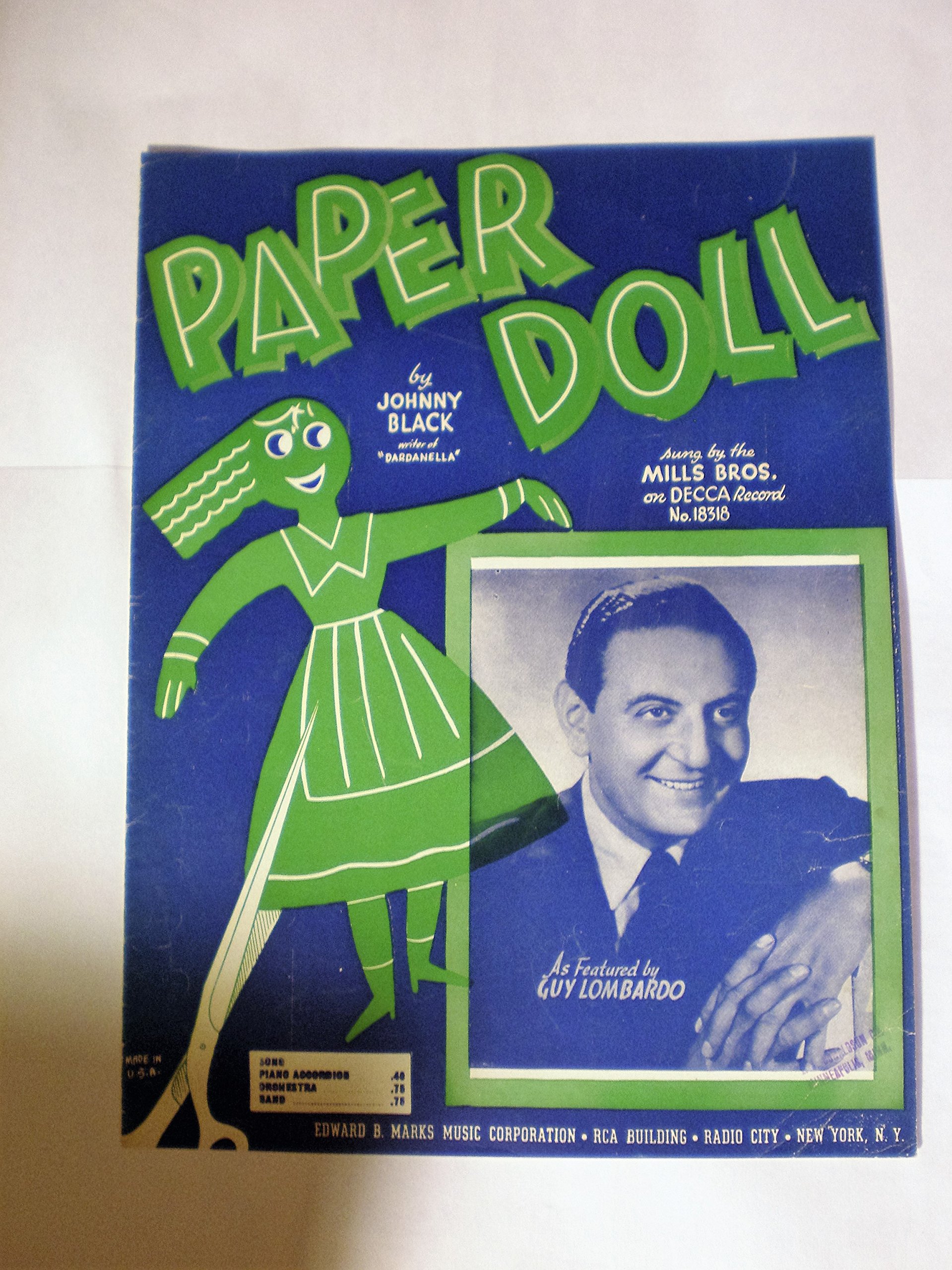 Paper Doll The Mills Brothers By J S Black Sheet Music On