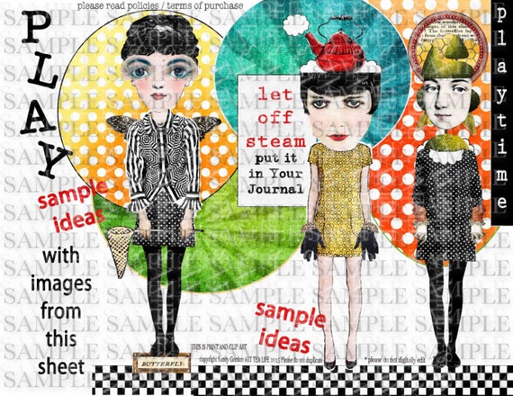 Art Tea Life Hello Honey Paper Dolls Collage Sheet Digital Etsy