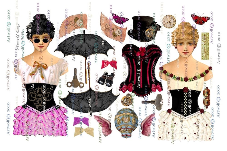 Steampunk Paper Doll Mix Match Digital Paper Doll Clothing