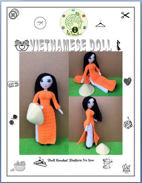 Vietnamese Doll In Traditional Long Dress And Hat Pdf Instant Etsy