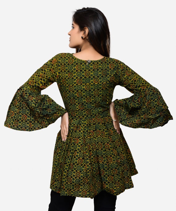 Ajrakh Hand Block Printed Top Ladies Summer Wear Top Umbrella Etsy