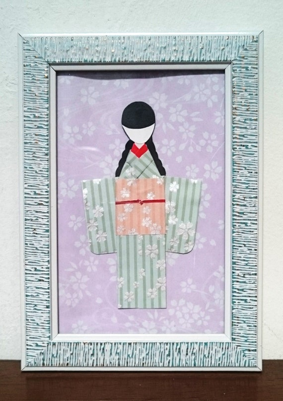 Green And Peach Sakura Kimono Origami Doll Japanese Paper Etsy